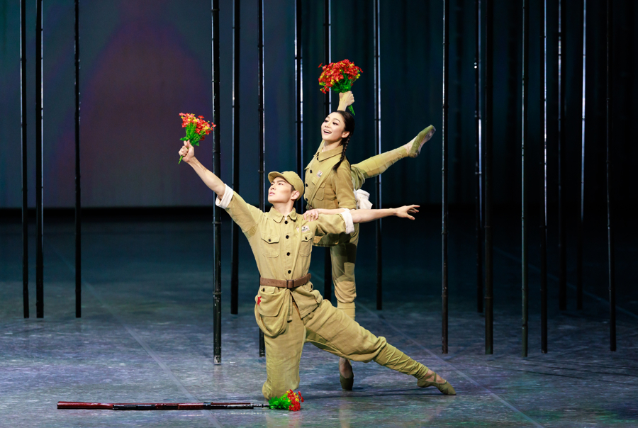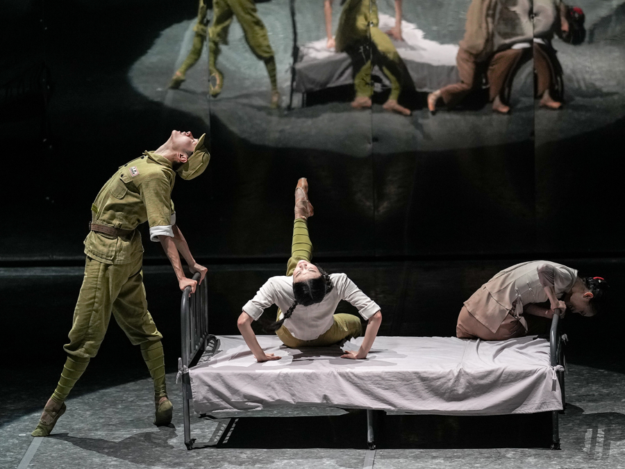 为贴近角色与时代,上海芭蕾舞团首席主要演员戚冰雪、主要演员许靖昆与郭文槿等开启数月“浸泡式”准备。他们反复研读原著、查阅历史影像,甚至前往故事发生地海安参观苏中七战七捷纪念馆,在打破传统芭蕾肌肉记忆的过程中,将含蓄坚韧的江南女子、质朴腼腆的通讯员等角色刻画得鲜活立体。剧中“借被子”的轻喜剧场景、动人的双人舞、恢宏的战士群舞,以及尾声洁白纱裙与百合交织的群舞,逐层勾勒军民鱼水情,多次让观众泪洒现场。