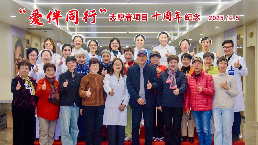 十年来,“爱伴同行”志愿服务项目已形成固定病区、固定团队和固定服务方式的长效工作机制。宣文办主任姚君介绍,该项目构建起独特的“患者-志愿者-医护”三角支持体系,让医学显露出温度与关怀。